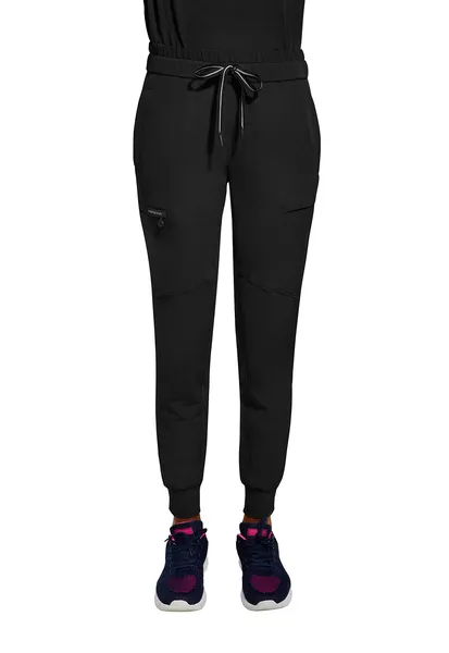 This Modern fit mid-rise jogger has an interior elastic knit waistband with a drawstring. There are six pockets: two side-front pockets, two back-patch pockets, one zip cargo pocket, and one patch cargo pocket with a flap. Other features include a back yoke seam, a full knit back, knit cuffs, plus front and back stylized seams. Tapered leg, 8 1/2" opening. Inseam: 28 1/2 9156
