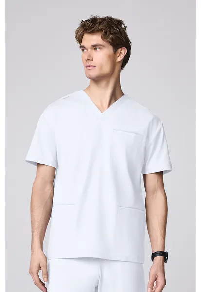 Clean lines and comfort that moves with you all shift long. Part of the Achieve line, this modern scrub top features a banded V-neckline, short sleeves and a streamlined silhouette in ultra-soft, 360° stretch knit that flexes as hard as you do. Designed with three welt pockets, a pen bar tack, badge ID loop at the shoulder for convenience and double-needle stitching for added durability. CB Length: 28" CK00037