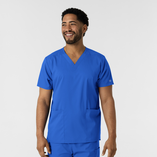 Designed with the next generation of healthcare in mind, this Unisex V-Neck Scrub Top is perfect for gearing up for action-packed days in labs, clinics, and classrooms. The classic V-neck silhouette provides a professional touch, while the soft, stretchy fabric moves with you as you master new skills. Stay organized with two spacious top-loading pockets and a dedicated cell phone pocket, keeping essentials within easy reach. Side vents give you extra room to bend, twist, and reach with ease. Thoughtfully crafted with sustainable fabric, this top combines comfort, durability, and a touch of eco-friendly style.
