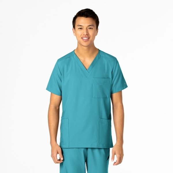 The Wink W123 Fabric is so amazing we wanted to make it available for everyone! This Unisex V-neck Scrub Top is a timeless utilitarian classic. With 4 pockets you will be able to keep your work essentials organized and with you at all times. The top loading front patch pocket on the wearers left features a multi-purpose accessory loop to ensure things stay put. The cell phone pocket is designed to be a snug fit for your phone so it stays in place with all of your movement. The shoulder badge loop is out of the way and so subtle most people don't even see it until you have a badge clipped to it. The side hem vents offer additional ease of movement in this four way stretch fabric that already extends the ultimate in comfort and stretch to your uniform top. The 100% Microfiber Polyester 4-way stretch fabric is comfortable and durable; holding color vibrancy wash after wash. Designed for universal comfort this unisex scrub top is an everyday staple. - 6855